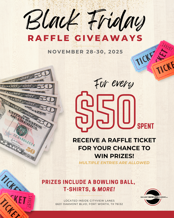 Don't miss your chance to win awesome prizes such as a bowling ball, shirts, and more!